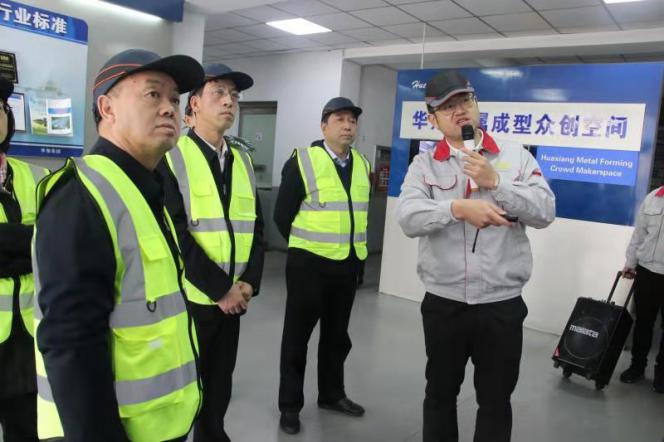 On March 3rd, yan changxue, party secretary and chairman of shanxi communications investment group under shanxi communication & control group, wei pengju, party secretary and chairman of shanxi communications & technology group, visited huaxiang with heads of investment, finance, technology and other departments. Wang chunxiang, chairman of the group, met the delegation, and wang yuan, President of the group, accompanied the delegation to visit our company's product exhibition center and manufacturing platform workshop, and focused on the inspection of the model workshop of the intelligent factory project developed and assembled by our company jinghang intelligent automation company. During the visit, the two sides held discussions and exchanges on the topics of enterprise management, market positioning and product sales, enterprise transformation and intelligent manufacturing.